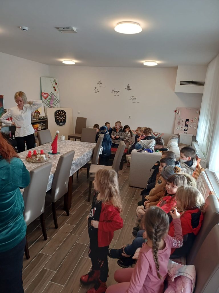Tom prigodom mališani su pripremili prigodan blagdanski program kojim su razveselili korisnike centra. Izveli su pjesme „Zvončići“, „Sveti Niko svijetom šeta“ i „Darove nam Niko daj“, a zajedničko druženje dodatno je obogaćeno čitanjem slikovnice „Isusovo rođenje“, koju su svi prisutni s velikim interesom pratili.